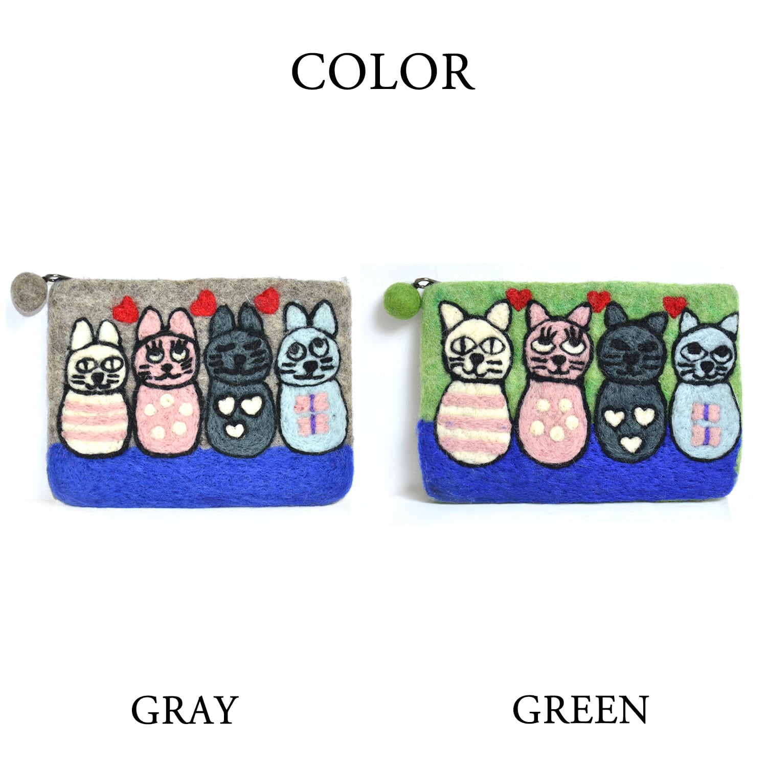 ネコ4匹 ウールフェルトポーチ ポーチ 小物入れ ねこ 縦13cm×横19cm